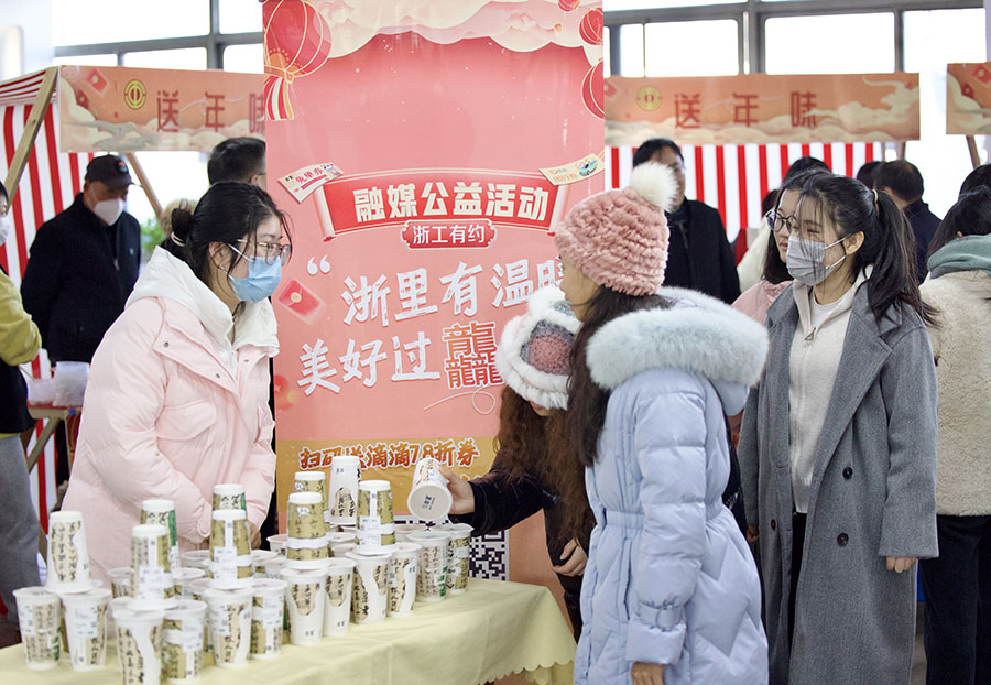 4、送年味活動。“嵊州小籠包、油麻筋團、餃子湯圓、現(xiàn)磨咖啡”應有盡有,邀請了嵊州美食名家來現(xiàn)場制作嵊州小吃、商圈飲品,讓員工們在品嘗特色小吃的同時,還了解更多嵊州美食文化。