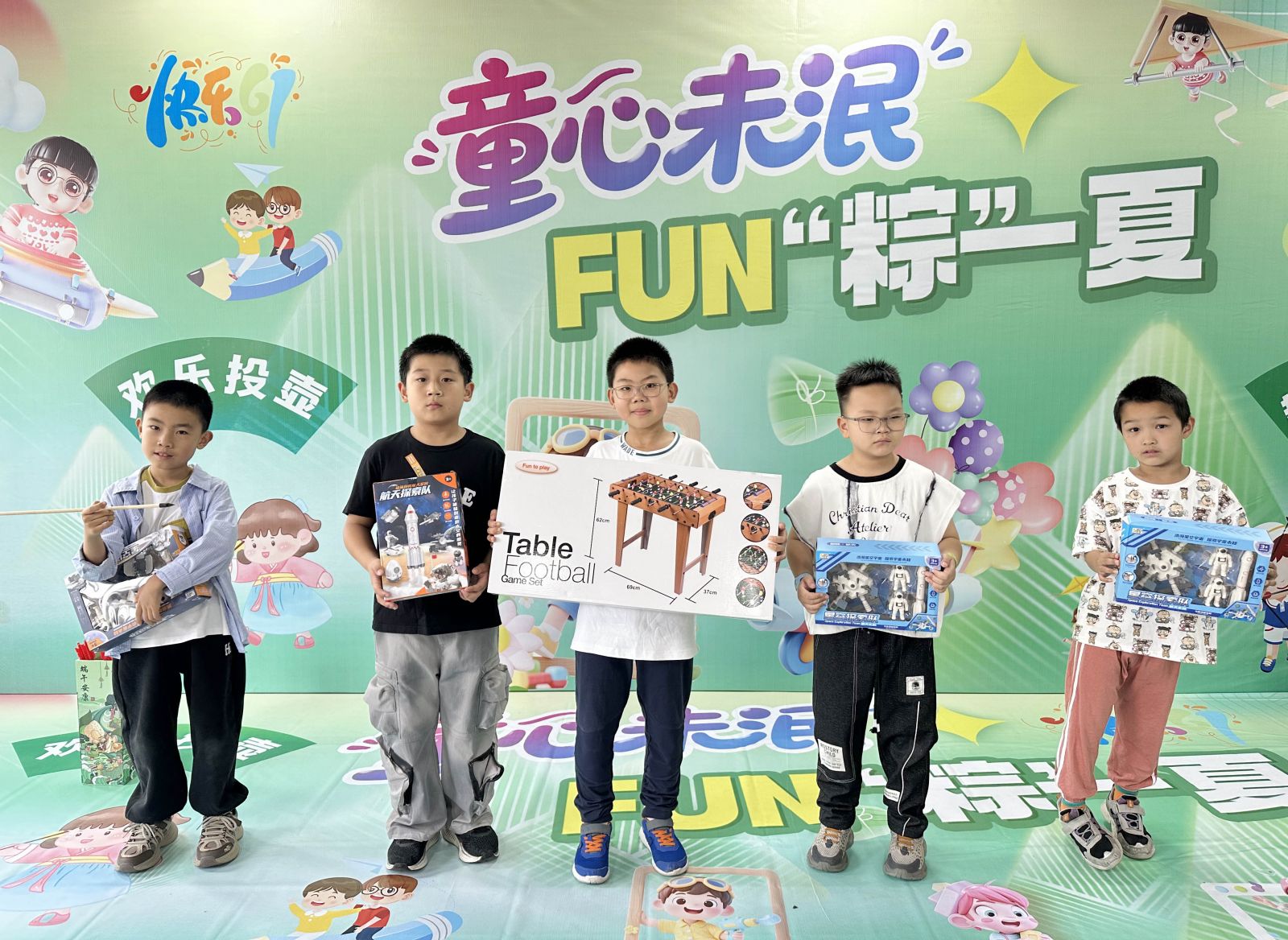 活動(dòng)現(xiàn)場,充滿節(jié)日氛圍的布置令人眼前一亮。古色古香的端午元素與充滿童趣的六一裝飾相得益彰,營造出溫馨歡樂的活動(dòng)氛圍。此次活動(dòng)設(shè)置了取香囊、套圈、積木拼裝、投壺、射箭等一系列精彩紛呈的游戲項(xiàng)目,同時(shí)根據(jù)不同年齡段劃分比賽組別,確保每個(gè)參與者都能在活動(dòng)中找到屬于自己的樂趣與挑戰(zhàn)。